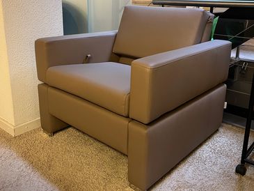 3-zits met chaise longue met opklapbare hoofdsteunen en uitschuifbare zittingen, leder.