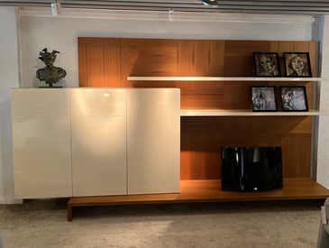 Hangkast 240 x 100 x 45cm in hoogglans, zijpanelen in notenfineer