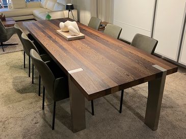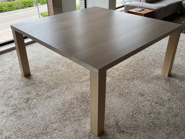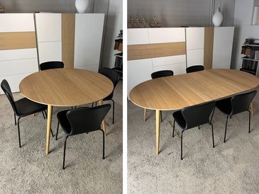 Uitschuifbare tafel 220(300)x100x77 cm, eiken + fenix lichtgrijs+wit onderstel.